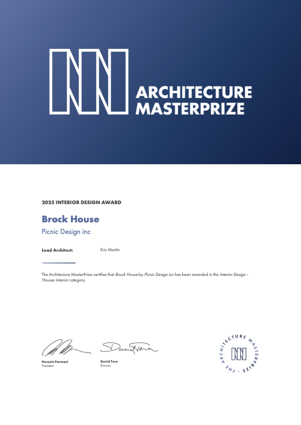 Architecture MasterPrize: Winner 2025The Architecture MasterPrize — Celebrating the best in International Architecture.Picnic Design’s “Brock House” wins the Architecture MasterPrize Award in the Houses Interior category. Project Article