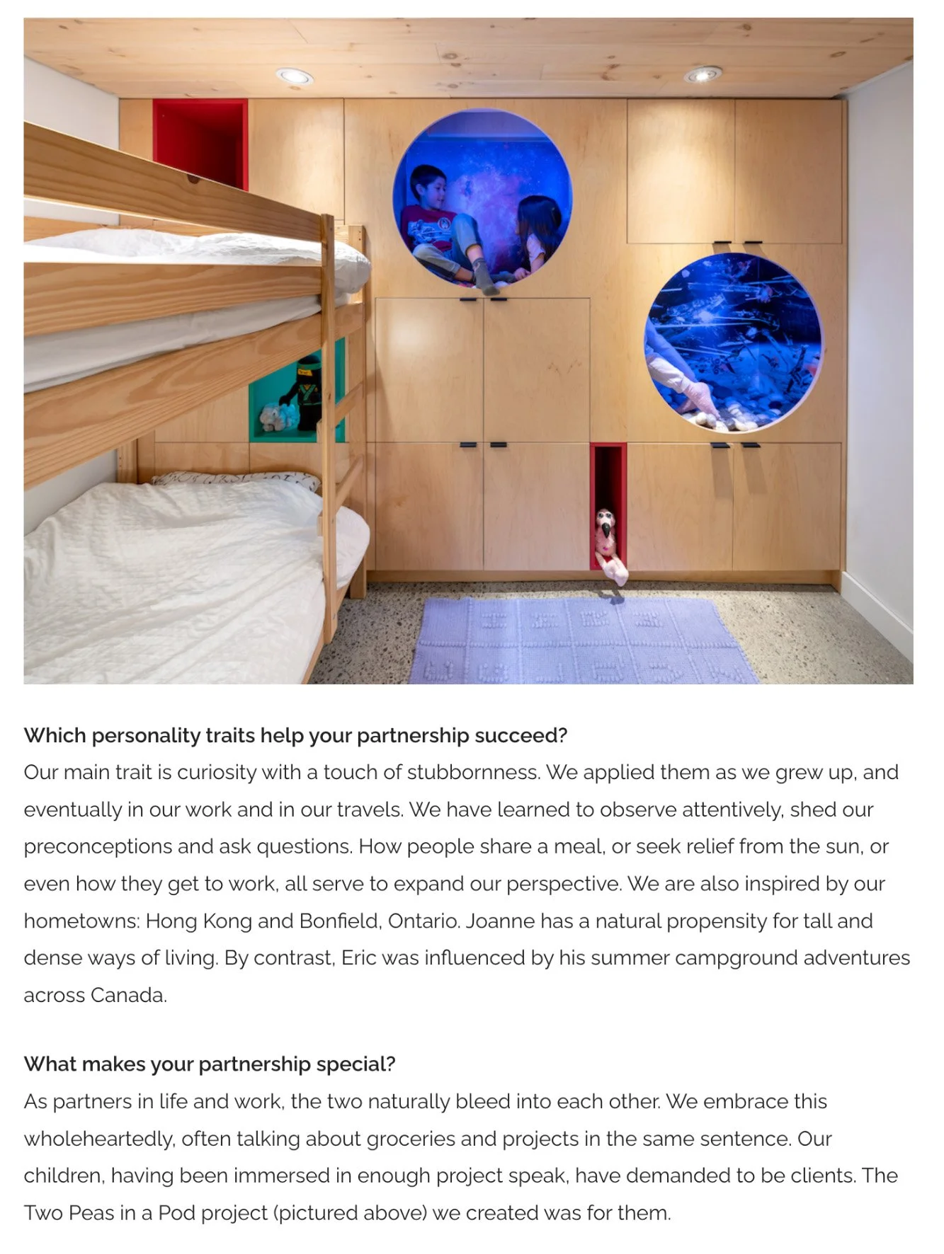 The article highlights our collaborative approach to architecture and interiors and explores how our work balances curiosity, play, and practicality.